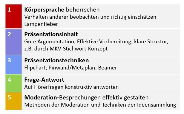 Das Seminar vermittelt handfeste Instrumente und Techniken, um den Beitrag vor der Gruppe noch überzeugender, wirkungsvoller und sicherer zu präsentieren.